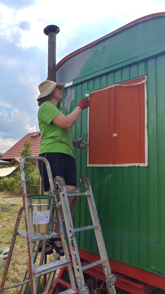 Hauptprojekte: Bauwagen ausbauen und Verputzen der Brandmauer. Hier könnt ihr euch ein Bild machen, falls ihr uns nicht besuchen konntet.