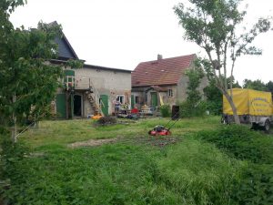 Zugewuchert war alles, als wir kamen- leider gab dann bald der Benzinrasenmäher den Geist auf ;-(