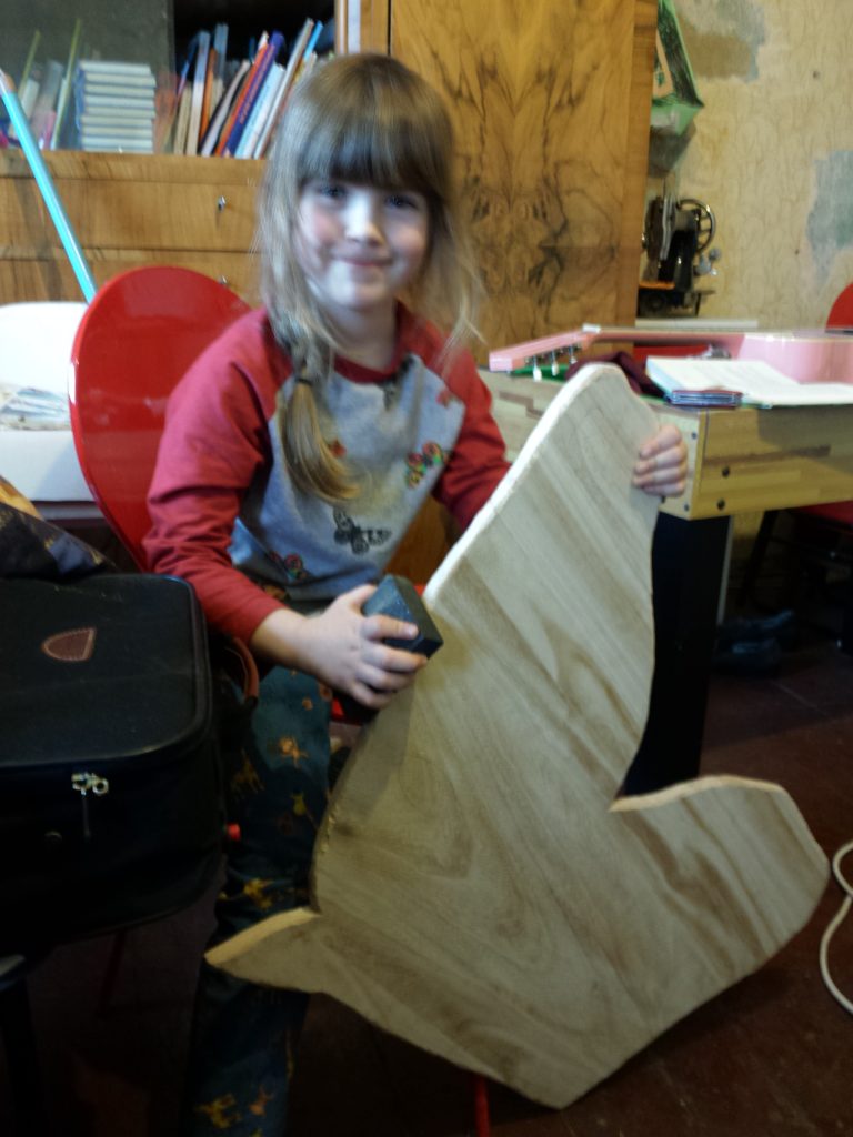 Alle helfen für das Pferd- die beiden Super-Bastler taufen es auf den Namen „Mia“ und reiten gleich gen Sonnenuntergang.